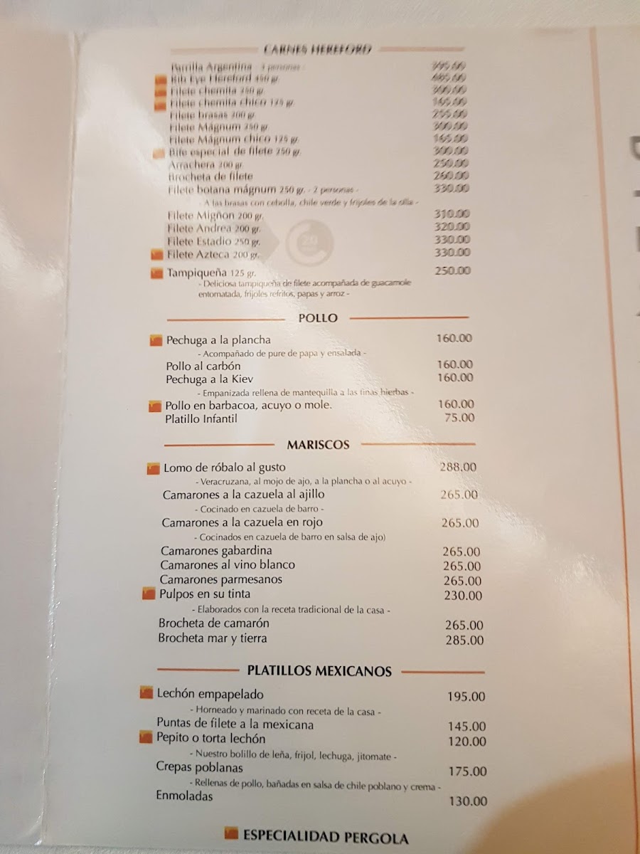 La Pergola Menu